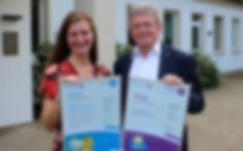 Danach nahmen die Leiterin der Kindertagesstätte Wilma Osuji und der Vorsitzende des Sportvereins Norbert Zielonka Gütesiegel und Präsente aus den Händen von Dr. Klaus Balster (Initiator des Konzeptes bei der Sportjugend NRW und Ehrenmitglied des Landessportbundes NRW und des Stadtsportbundes Herne) und Petra Herrmann-Kopp (Programmverantwortliche in Herne für das Projekt NRW bewegt seine Kinder) entgegen. Dr. Klaus Balster ging in seiner Rede kurz auf die anfänglichen Gedanken und Beweggründe seiner Konzepterstellung in den 90er Jahren ein. Er lobte die geleistete Arbeit und bedankte sich bei allen beteiligten Akteuren. Den Wert, den die Zertifizierung für die St. Elisabeth Gruppe – Katholische Kliniken Rhein-Ruhr hatte, zeigte die Überbringung persönlicher Glückwünsche durch Dr. Sabine Edlinger, Mitglied der Geschäftsführung. Nach der kleinen Feierstunde, bei der auch Vertreter des Elternrates zugegen waren, lud die Kita zum Bewegungsfest für Kinder und Angehörige ein.